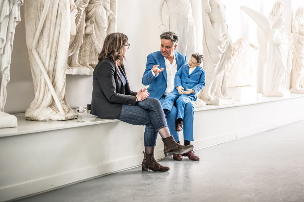 Wir haben uns in den Räumen der Kunstakademie Düsseldorf getroffen. Zwischen alten Gipsabgüssen und weißen Repliken antiker Skulpturen herrscht eine ruhige, konzentrierte Stimmung. Kunst und Geschichte sind präsent, ohne sich aufzudrängen.